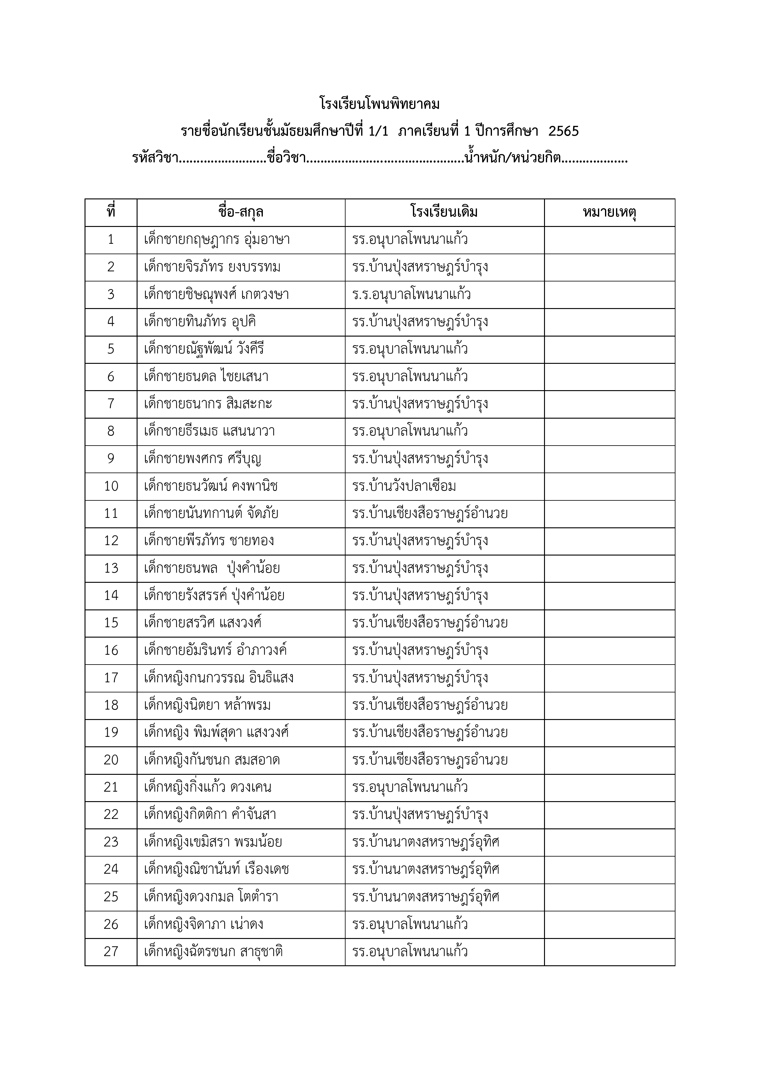 1. สำเนาเอกสารทางการศึกษา ป.พ 1 ฉบับถ่ายเอกสาร 1 ชุด