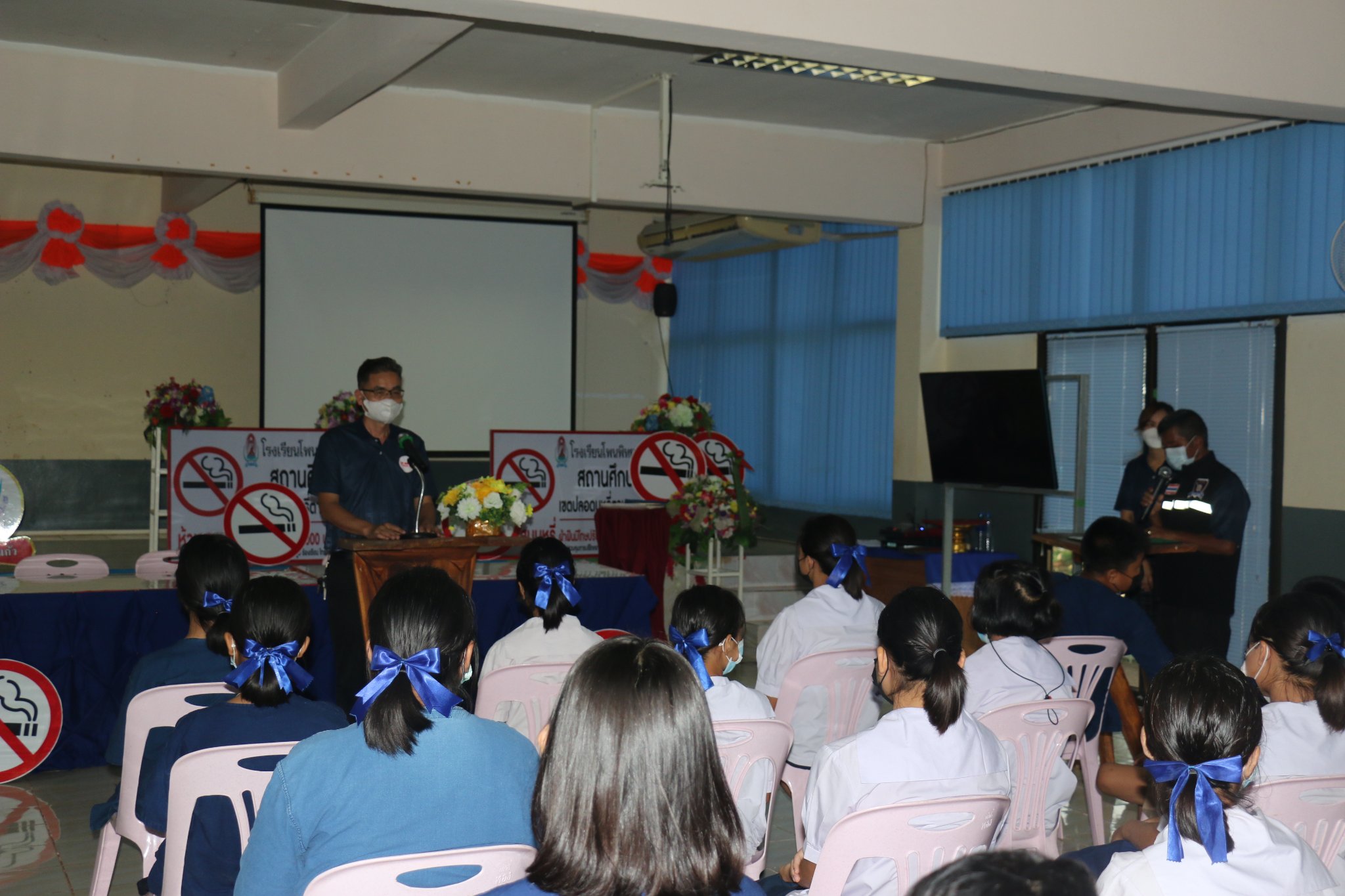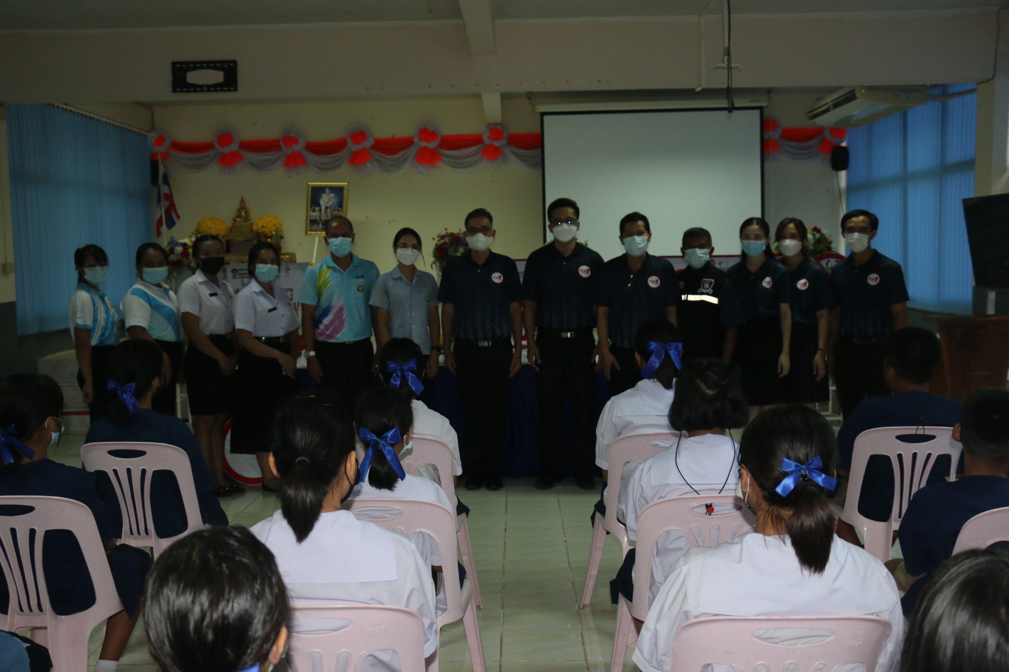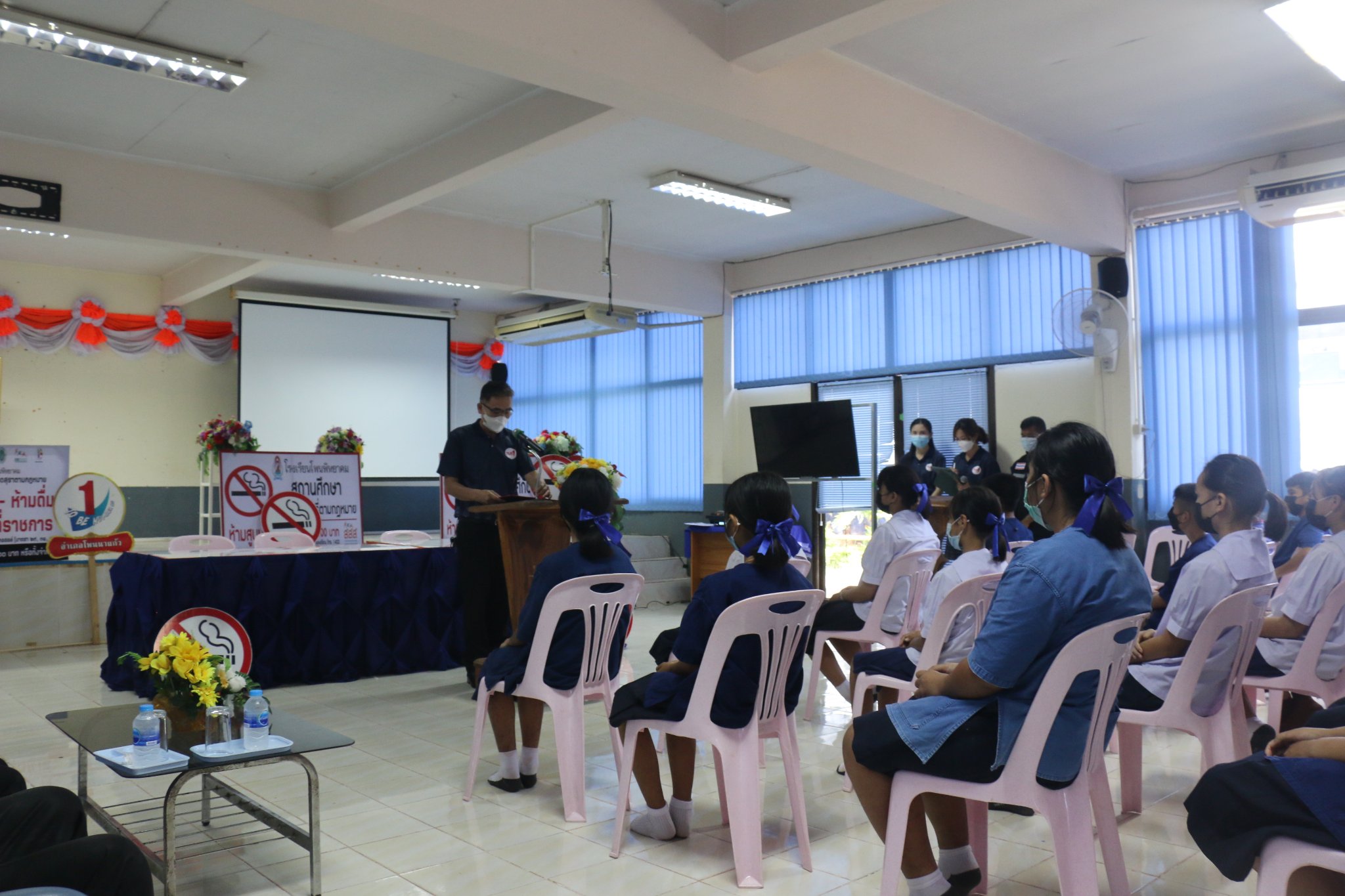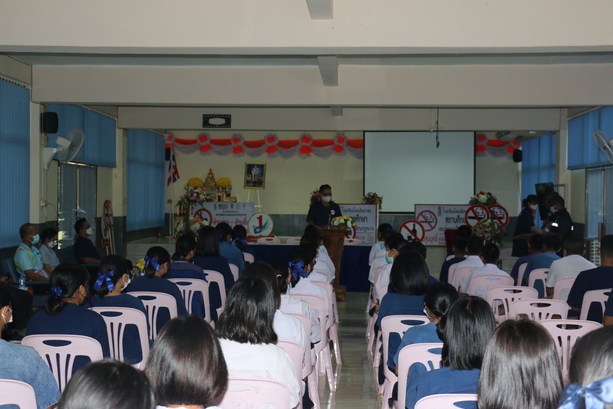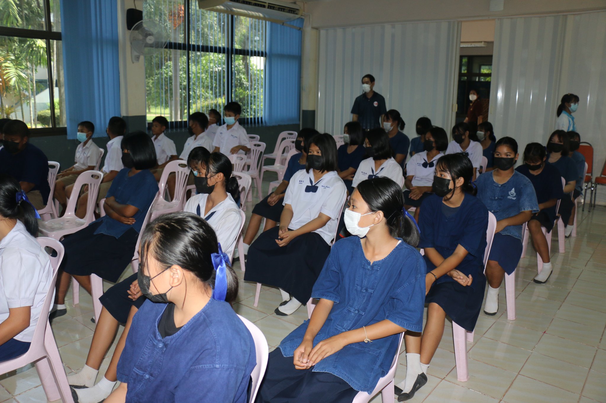 นักเรียนชั้นม.1 เข้ารับการอบรม ความรู้เรื่องกัญชา กัญชง ใบกระท่อม เมื่อวันที่ 25 มิถุนายน 2565 โฌดยมีวิทยาการเป็นเจ้าหน้าสาธารณสุข ชุมชน มาให้ความรู้ กับนักเรียนในครั้งนี้