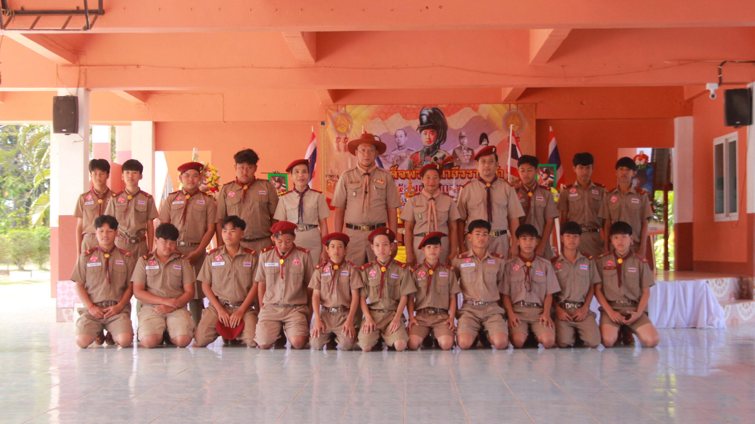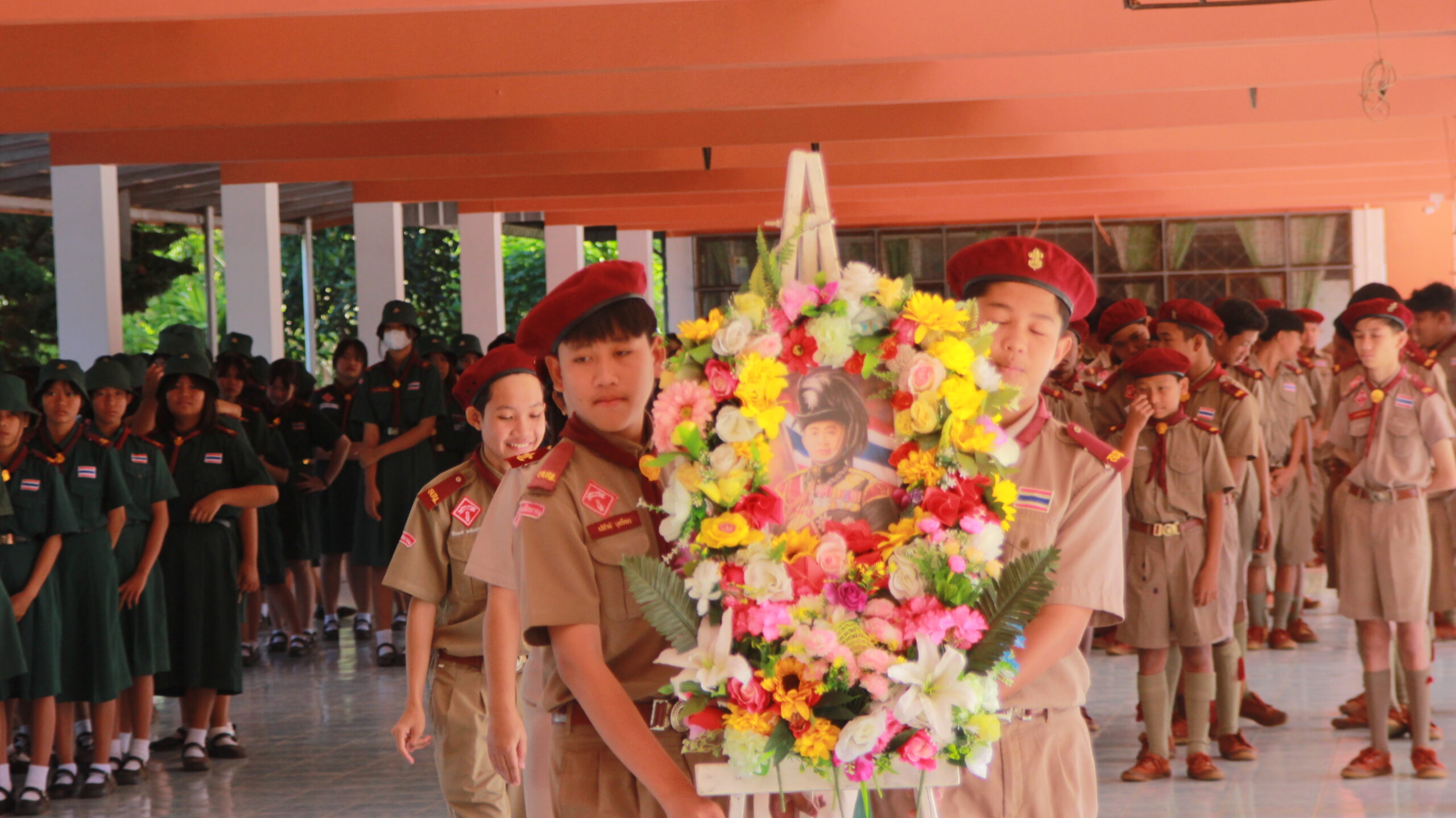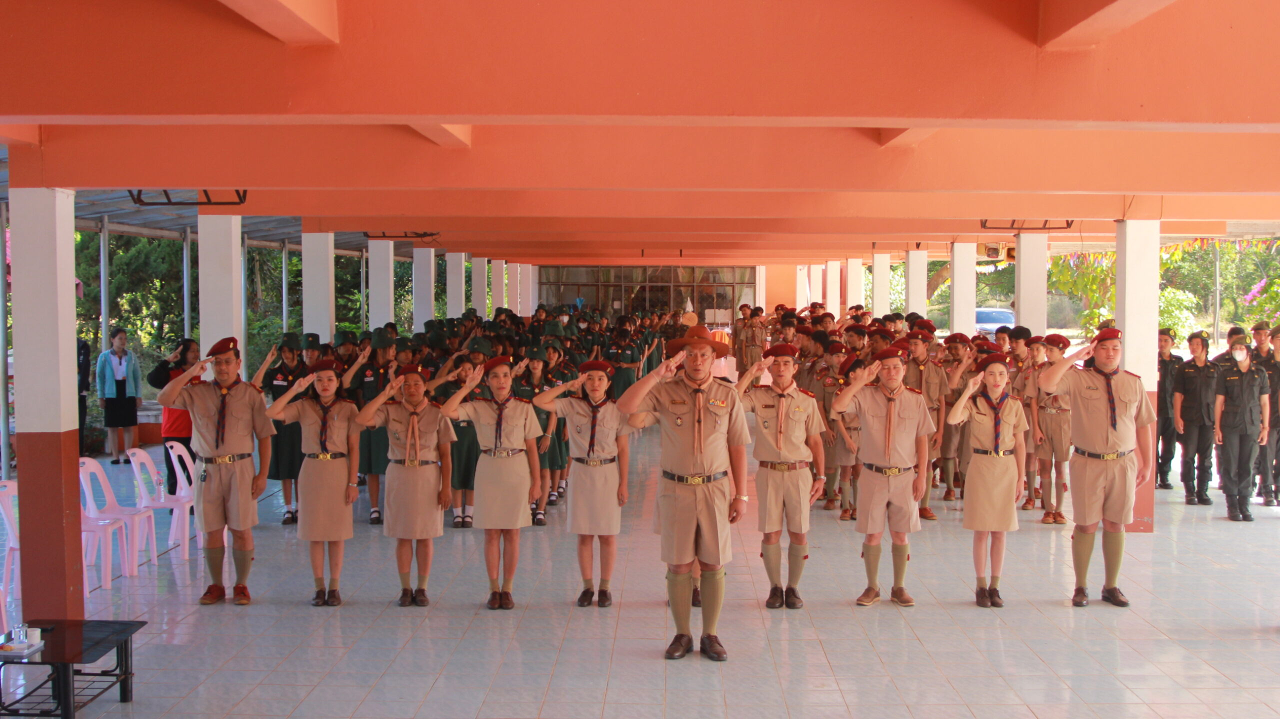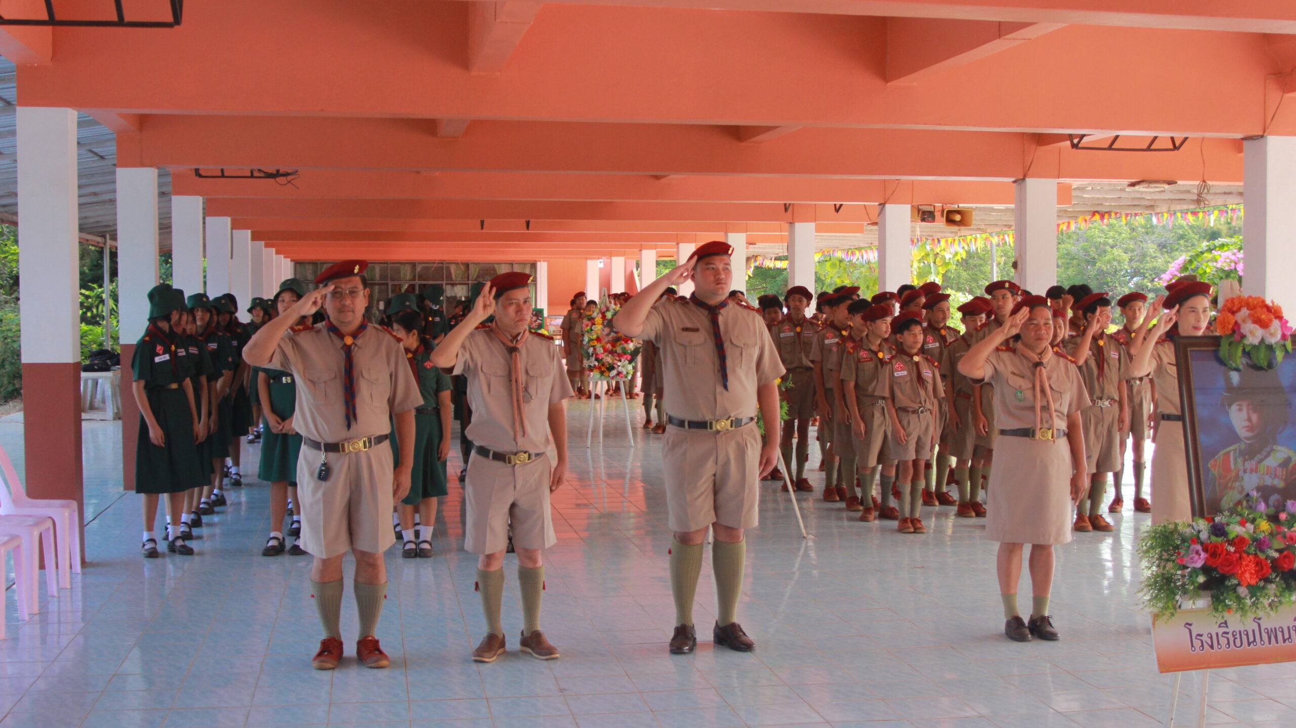 นายโสภณ อุดรสรรพ์ ผู้อำนวยการกองลูกเสือ ผู้กำกับลูกเสือ รองผู้กำกับลูกเสือ เนตรนารี นำคณะ ร่วมพิธีรำลึกพระมหากรุณาธิคุณ เนื่องในวันพระมหาธีราชเจ้า ณ โรงเรียนโพนพิทยาคม