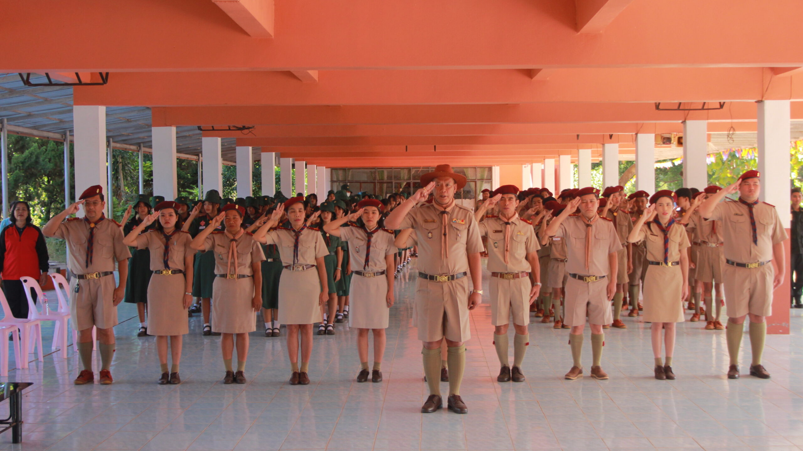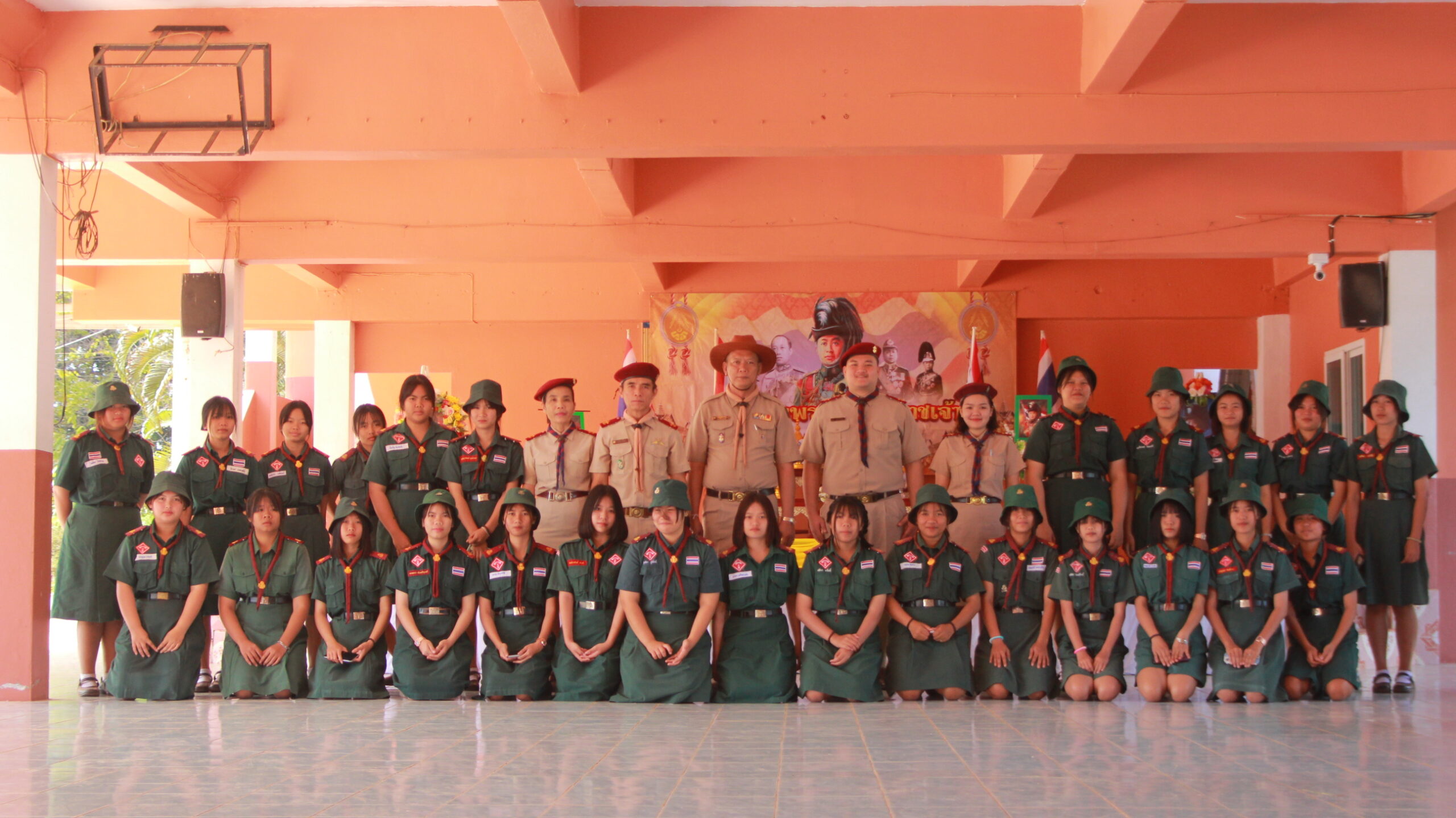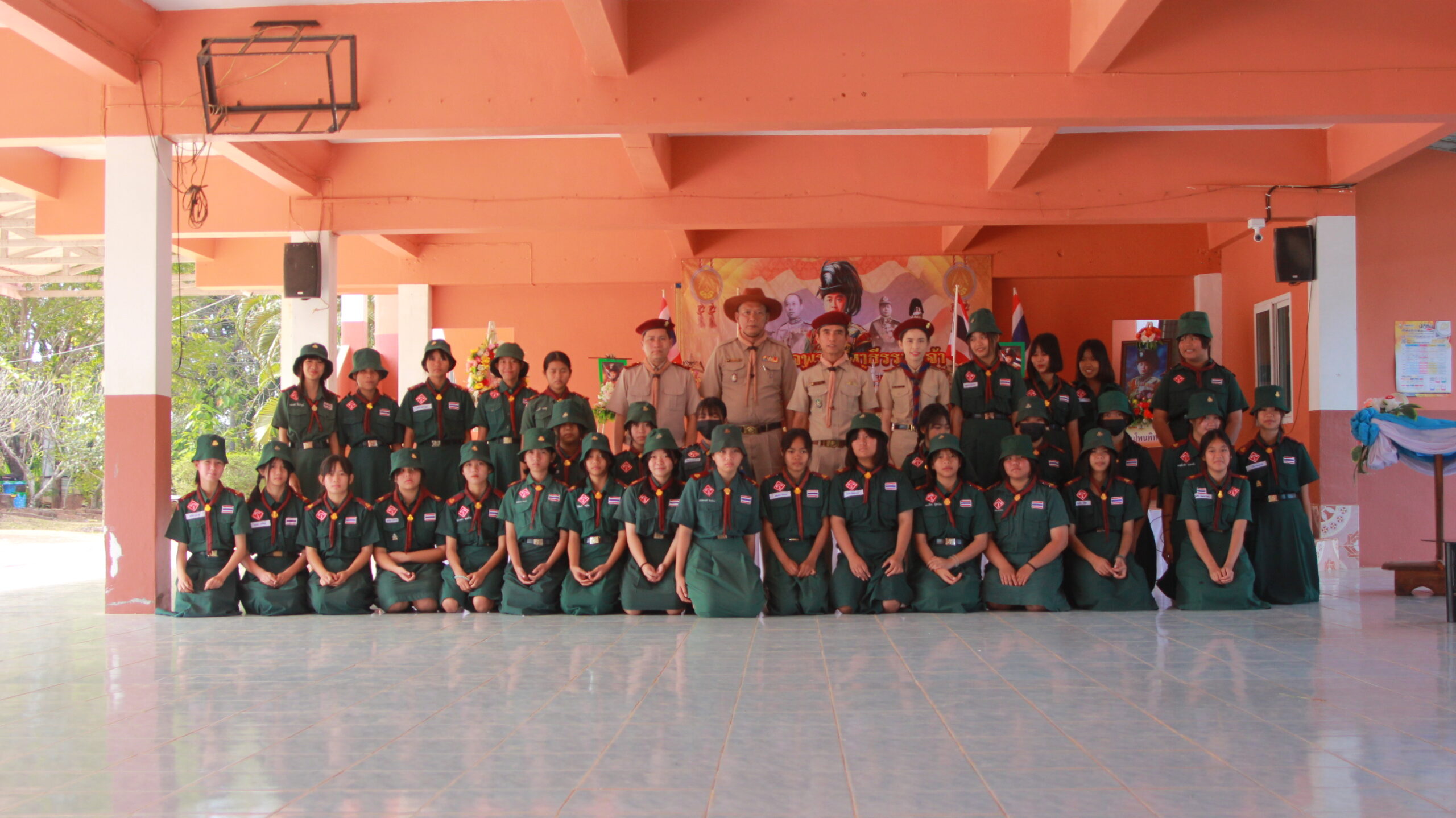 นายโสภณ อุดรสรรพ์ ผู้อำนวยการกองลูกเสือ ผู้กำกับลูกเสือ รองผู้กำกับลูกเสือ เนตรนารี นำคณะ ร่วมพิธีรำลึกพระมหากรุณาธิคุณ เนื่องในวันพระมหาธีราชเจ้า ณ โรงเรียนโพนพิทยาคม