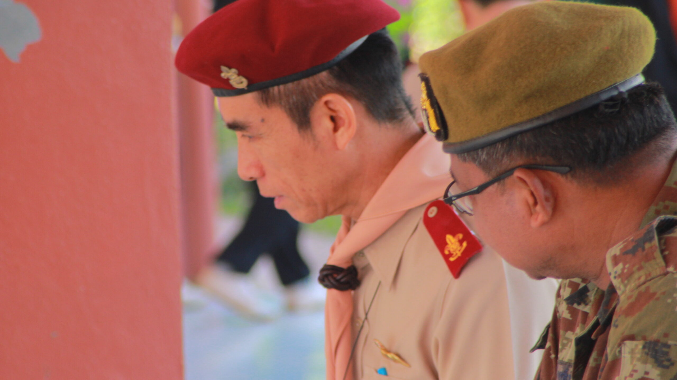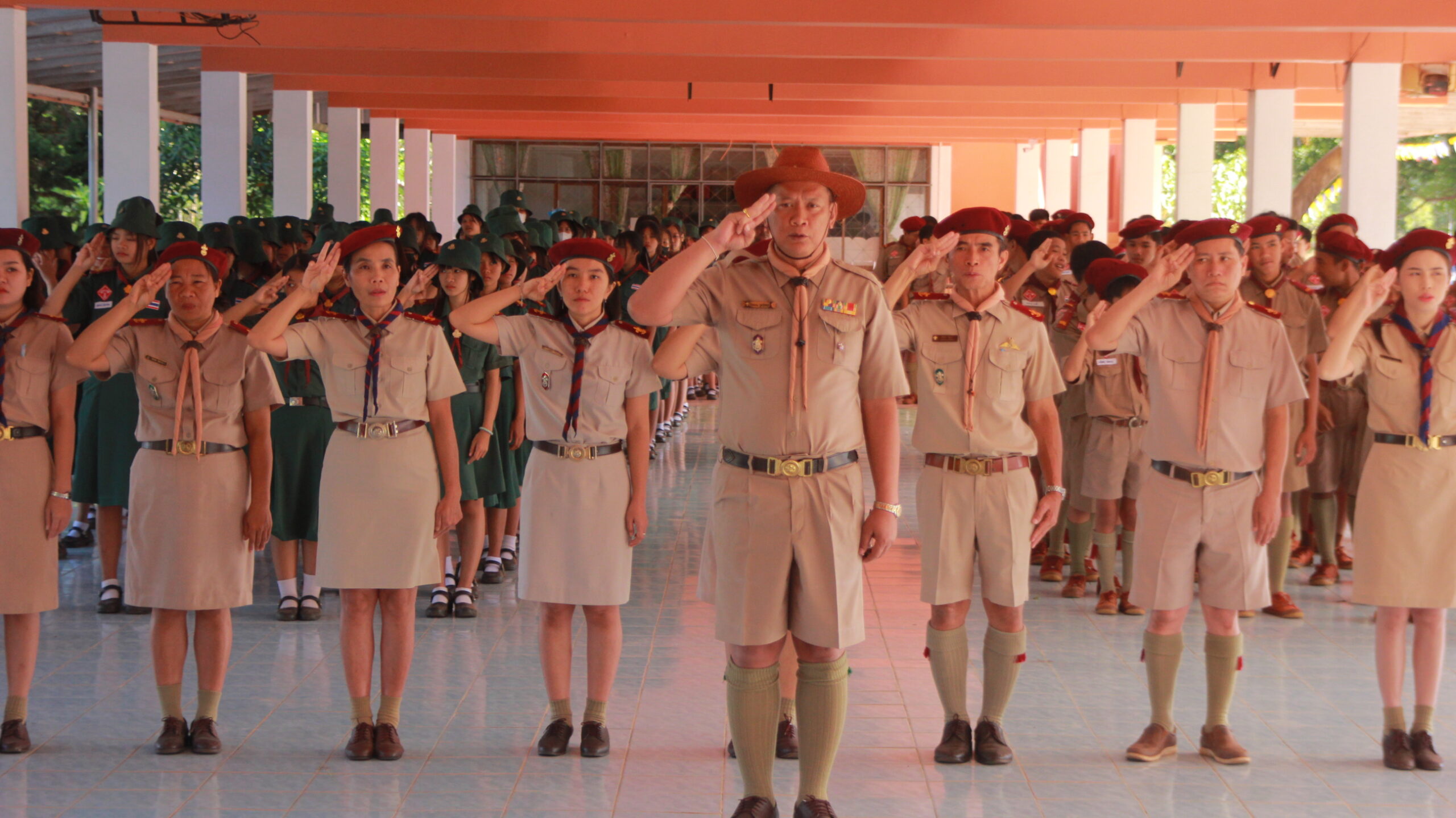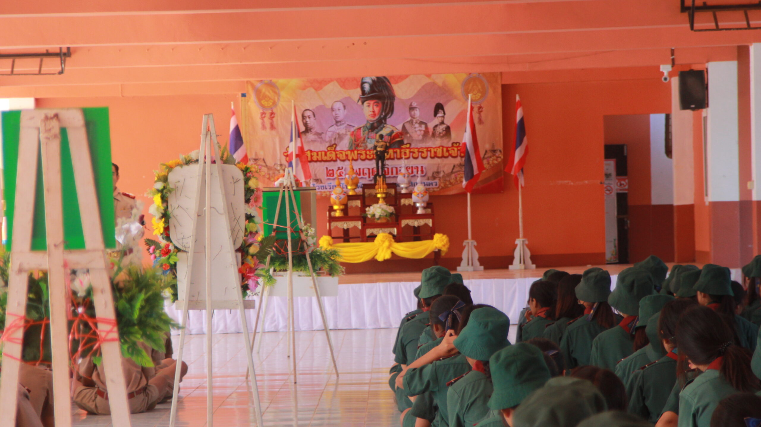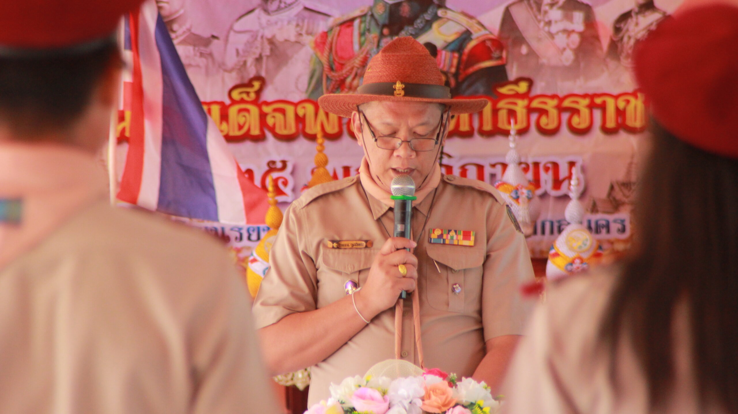 นายโสภณ อุดรสรรพ์ ผู้อำนวยการกองลูกเสือ ผู้กำกับลูกเสือ รองผู้กำกับลูกเสือ เนตรนารี นำคณะ ร่วมพิธีรำลึกพระมหากรุณาธิคุณ เนื่องในวันพระมหาธีราชเจ้า ณ โรงเรียนโพนพิทยาคม
