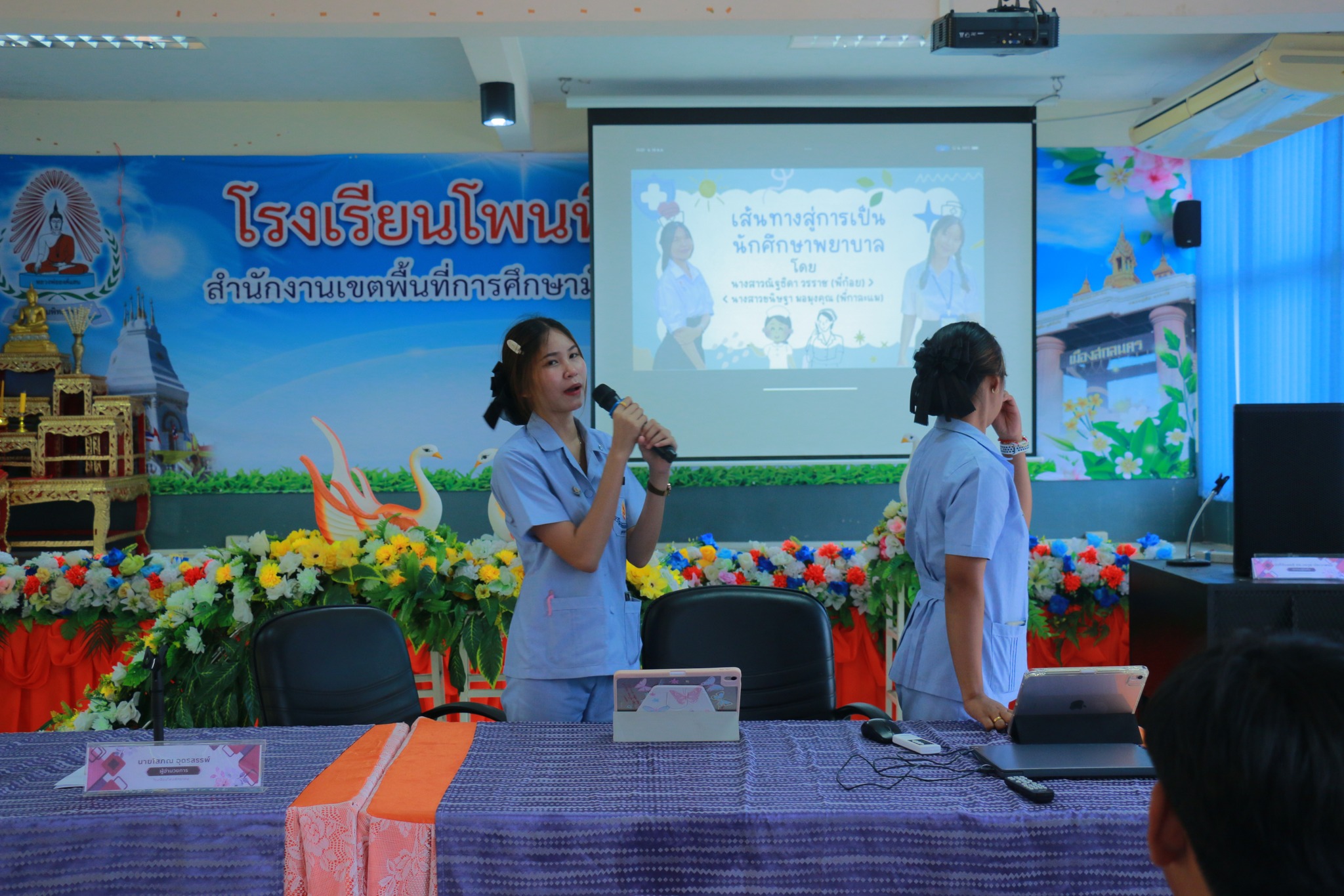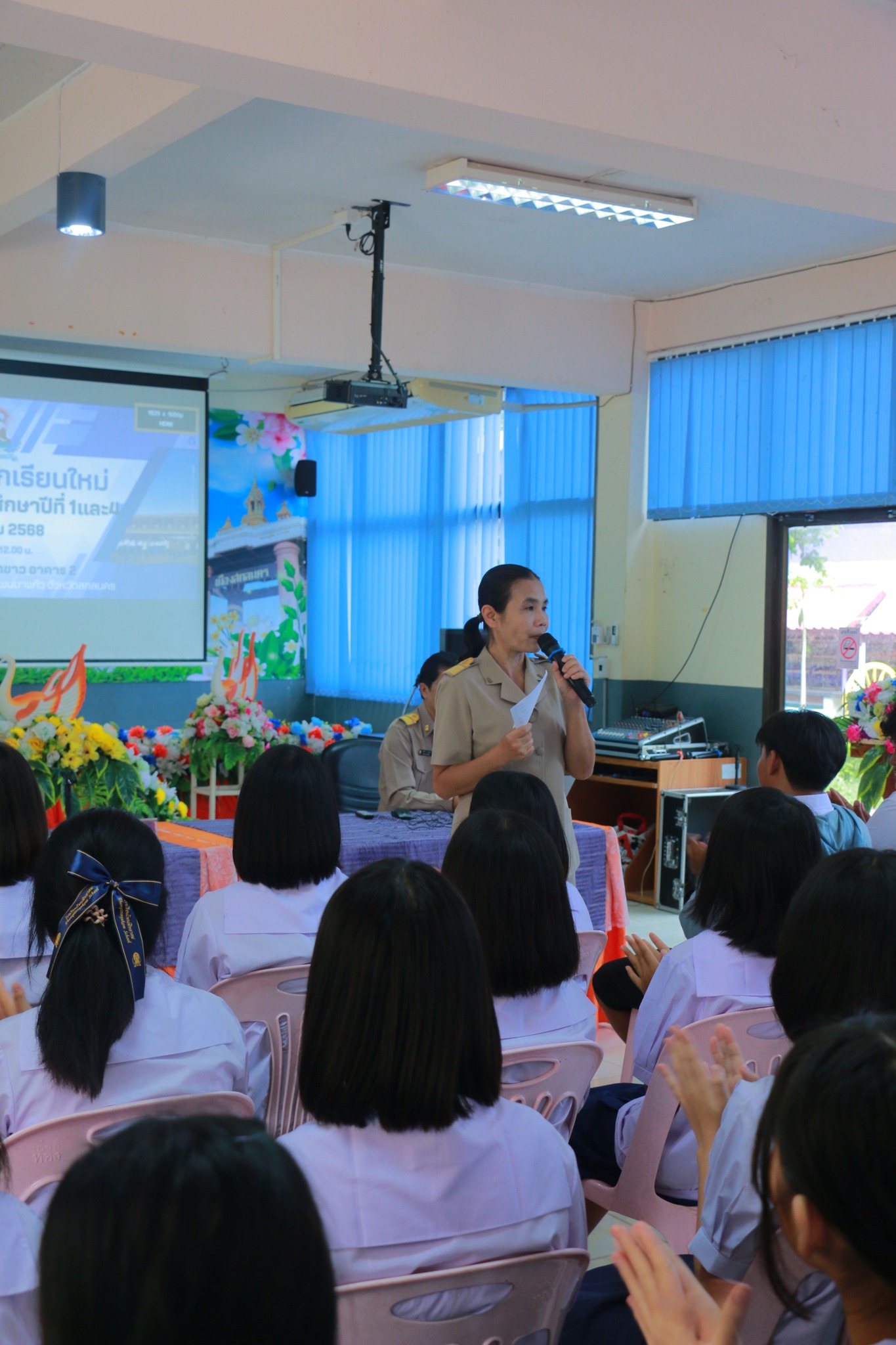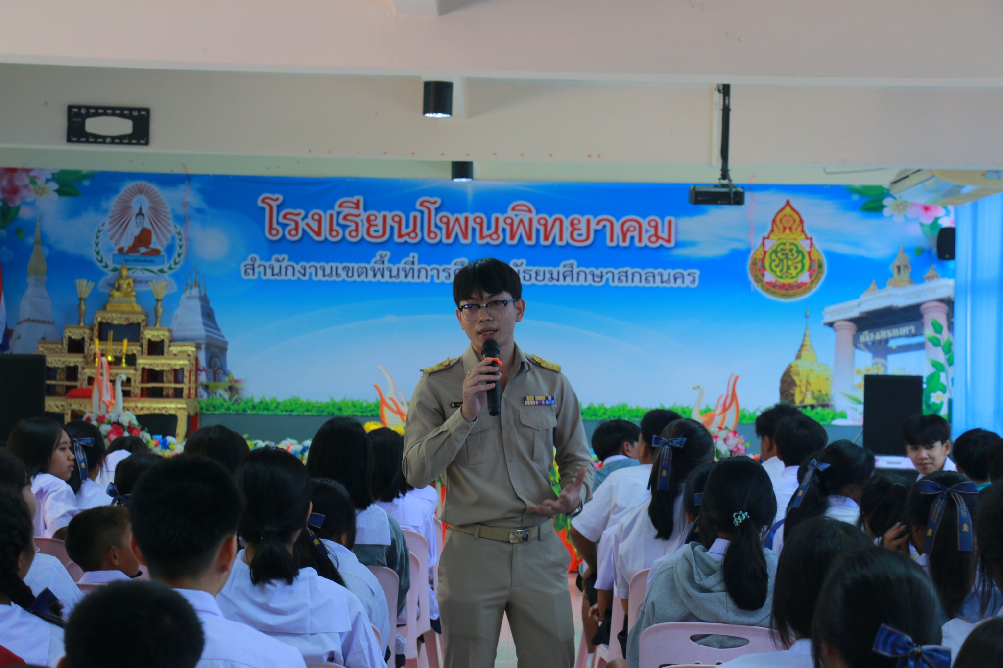 19 พฤษภาคม 2568 เวลา 09.00 -12.00 กลุ่มบริหารงานวิชาการ ได้จัดกิจกรรมปฐมนิเทศ นักเรียนใหม่ ระดับชั้นมัธยมศึกษาปีที่ 1 และ 4 ประจำปีการศึกษา 2568 โดยมี ผอ.โสภณ อุดรสรรพ์ เป็นประธานในพิธี ในกิจกรรม มีรองผอ.เอกชัย นามนนท์ หัวหน้ากลุ่มบริหาร ครู หัวหน้างาน มาให้ความรู้นักเรียน แนวทางการการเรียน การร่วมกิจกรรมต่าง ๆ ในสถานศึกษา ของเรา ณ โอกาสนี้ ทางโรงเรียนได้เชิญศิษย์เก่า นักศึกษาพยาบาลศาสตร์ วิทยาลัยพยาบาลบรมราชชนนี จ.อุดรธานี นางสาวณัฐธิดา วรราช และนางสาวขนิษฐา มอมุงคุณ มาให้ความรู้แนวทางการศึกษาต่อสาขาพยาบาล รวมถึงนักศึกษาฝึกประสบการณ์วิชาชีพครู มาให้ความรู้การศึกษาต่อในสาขาครุศาสตร์ จากมหาวิทยาลัยราชภัฎสกลนคร นางสาวหงษ์ลัดดา อำภาวงศ์ และนางสาวพลอยมณี สุคำภา มาให้ความรู้ เพื่อสร้างแรงบันดาลใจให้นักเรียน ณ โอกาสนี้