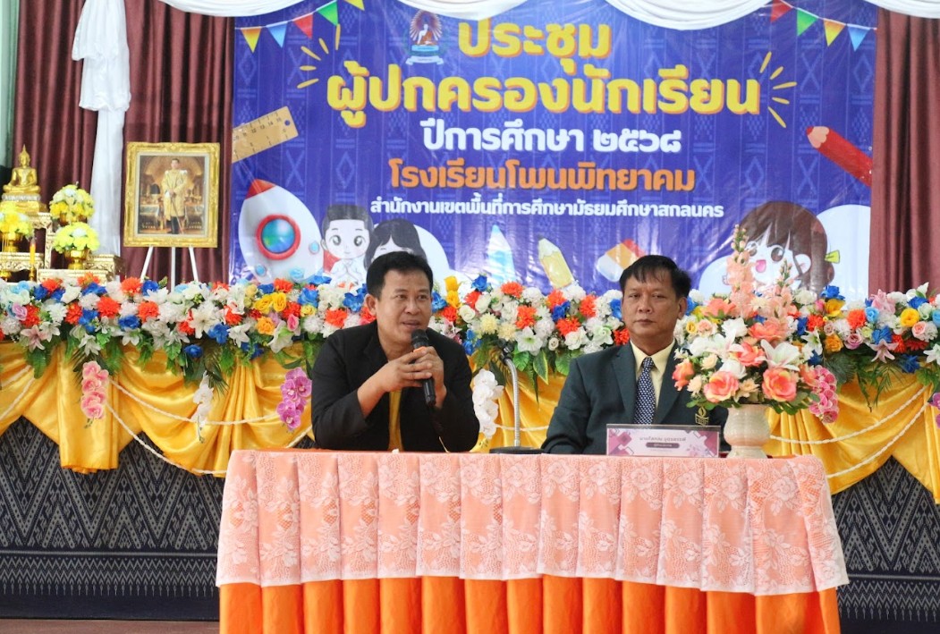 28 พฤษภาคม 2568 เวลา 09.00-12.00 น. โรงเรียนโพนพิทยาคม อำเภอโพนนาแก้ว จังหวัดสกลนคร ได้จัดกิจกรรมประชุมผู้ปกครองนักเรียน ประจำปีการศึกษา 2568 โดยมีนายโสภณ อุดรสรรพ์ ผู้อำนวยการ นายเอกชัย นามนนท์ รองผู้อำนวยการ ได้กล่าวต้อนรับ ผู้ปกครองทุกระดับชั้น ด้วยความยินดียิ่ง ณ โอกาสนี้ ว่าที่ ร.ต.ดร.วรวุธ ประวะพรม ผู้บริหาร วิทยาลัยอาชีวศึกษาการท่องเที่ยวและการโรงแรม มาให้ความรู้ การจัดการศึกษาในรูปแบบห้องเรียนสายอาชีพ เรียบจบ ม.6 ที่โรงเรียนโพนพิทยาคม ได้ 2 วุฒิการศึกษา คือ สายสามัญ และสายอาชีพ