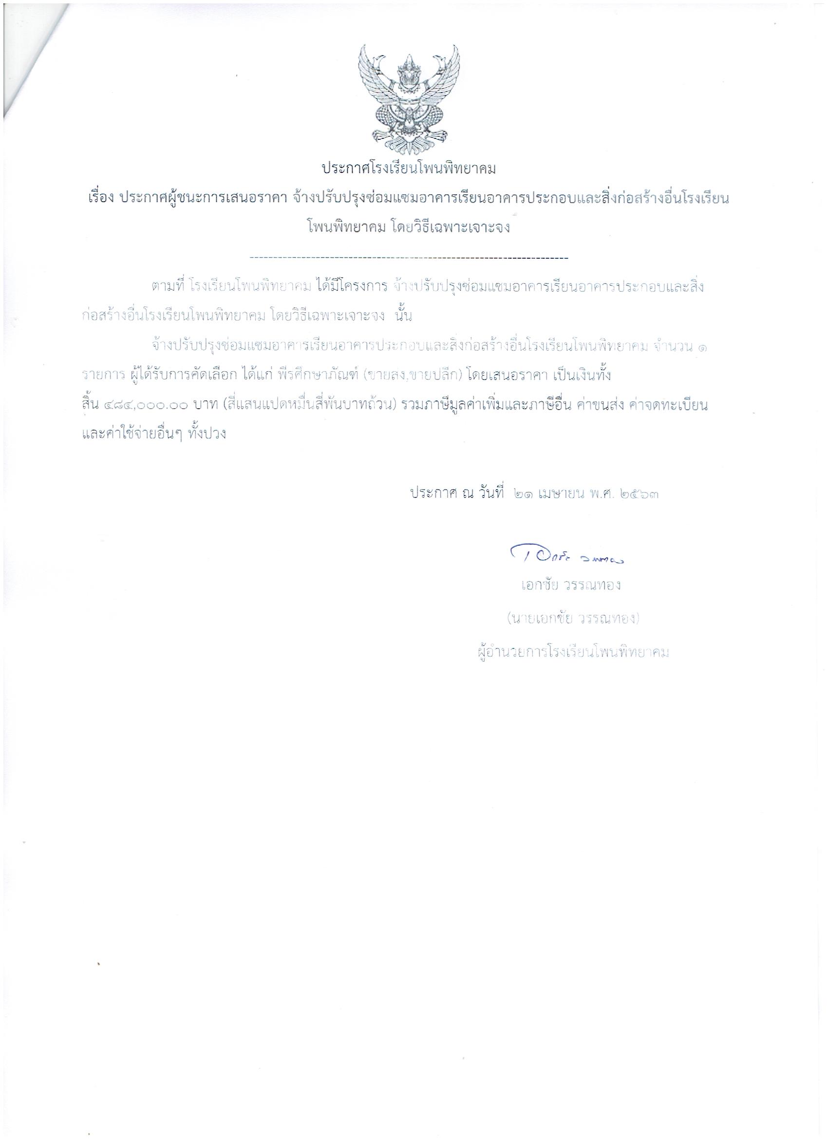 ประกาศโรงเรียนโพนพิทยาคม ผู้ชนะการเสนอราคา จ้างปรับปรุงซ่อมแซม อาคารเรียนอาคารประกอบและสิ่งก่อสร้างอื่นในโรงเรียน 15 กันยายน 2563ratchakarn7ข่าวประกวดราคา/จัดซื้อ จัดจ้าง