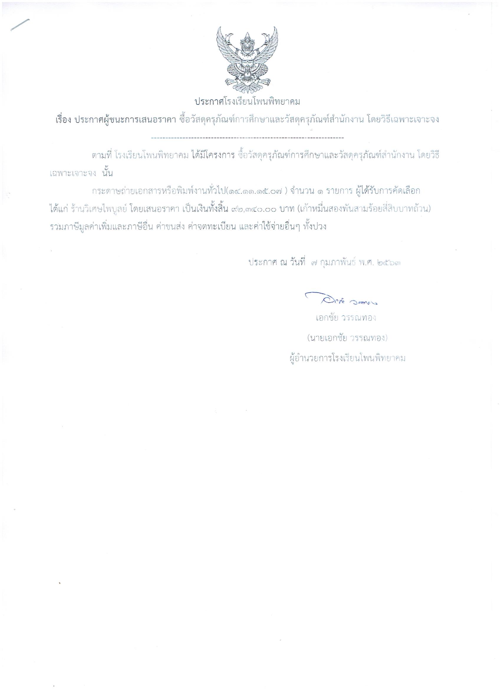 ประกาศโรงเรียนโพนพิทยาคมผู้ชนะการเสนอราคา ซื้อวัสดุครุภัณฑ์สำนักงาน โดยวิธีเฉพาะเจาะจง 15 กันยายน 2563ratchakarn7ข่าวประกวดราคา/จัดซื้อ จัดจ้าง