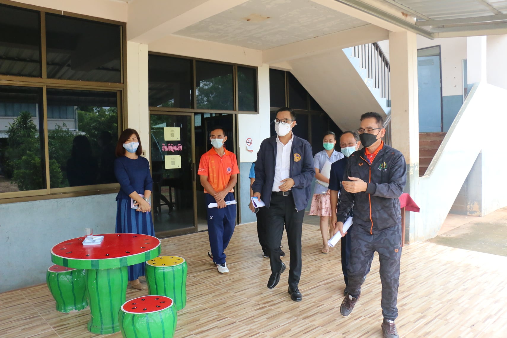 ผู้บริหารและคณะครู บุคลากรทางการศึกษา มีโอกาสต้อนรับ นายวิชาญ อิทธิฤกษ์มงคล นายอำเภอโพนนาแก้ว พร้อมคุณหมอจันทร์สุดา สีหมอกและคณะ จากโรงพยาบาลชุมชนบ้านใหม่ไชยา ที่ได้มาตรวจเยี่ยมการเตรียมความพร้อมการเปิดเรียน ในภาคเรียนที่ 1 ปีการศึกษา 2564 ภายใต้สถานการณ์ การแพร่ระบาดของโรคโควิด -19 เมื่อวันศุกร์ ที่ 11 มิถุนายน 2564 ที่ผ่านมา