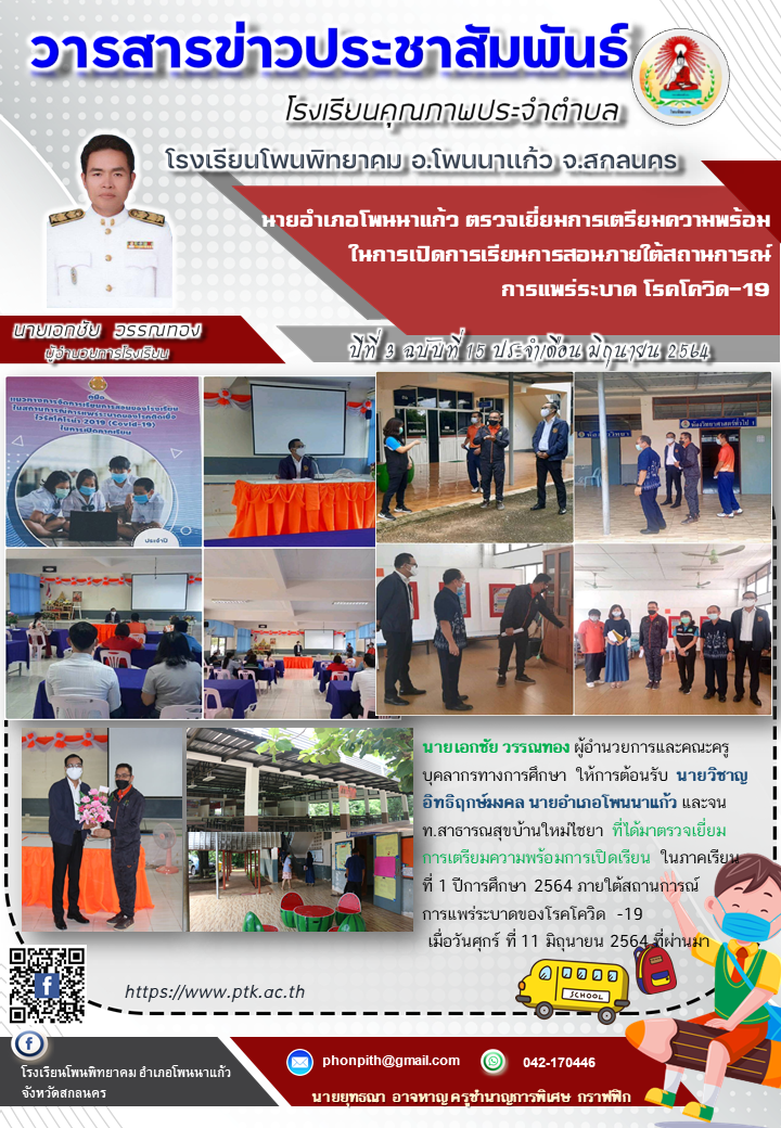 วารสารประชาสัมพันธ์ฉบับที่ 15นายอำเภอโพนนาแก้ว ตรวจเยี่ยม การเปิดภาคเรียนเนื่องจากสถานการณ์โควิด 19